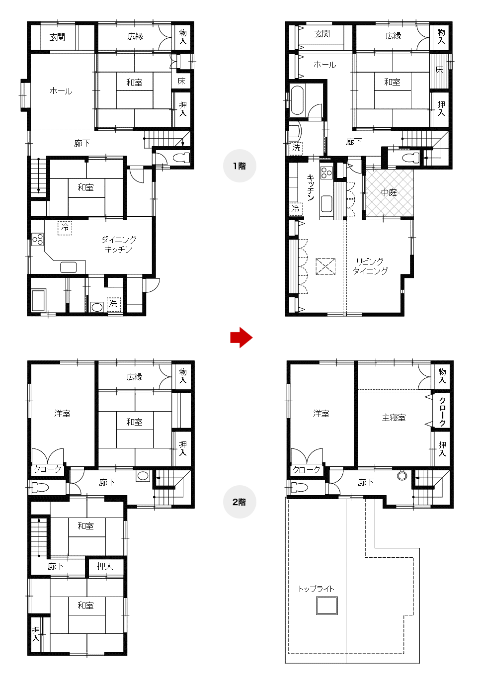 ここからは、三井のリフォームが携わった、減築リフォームの事例をご紹介します。