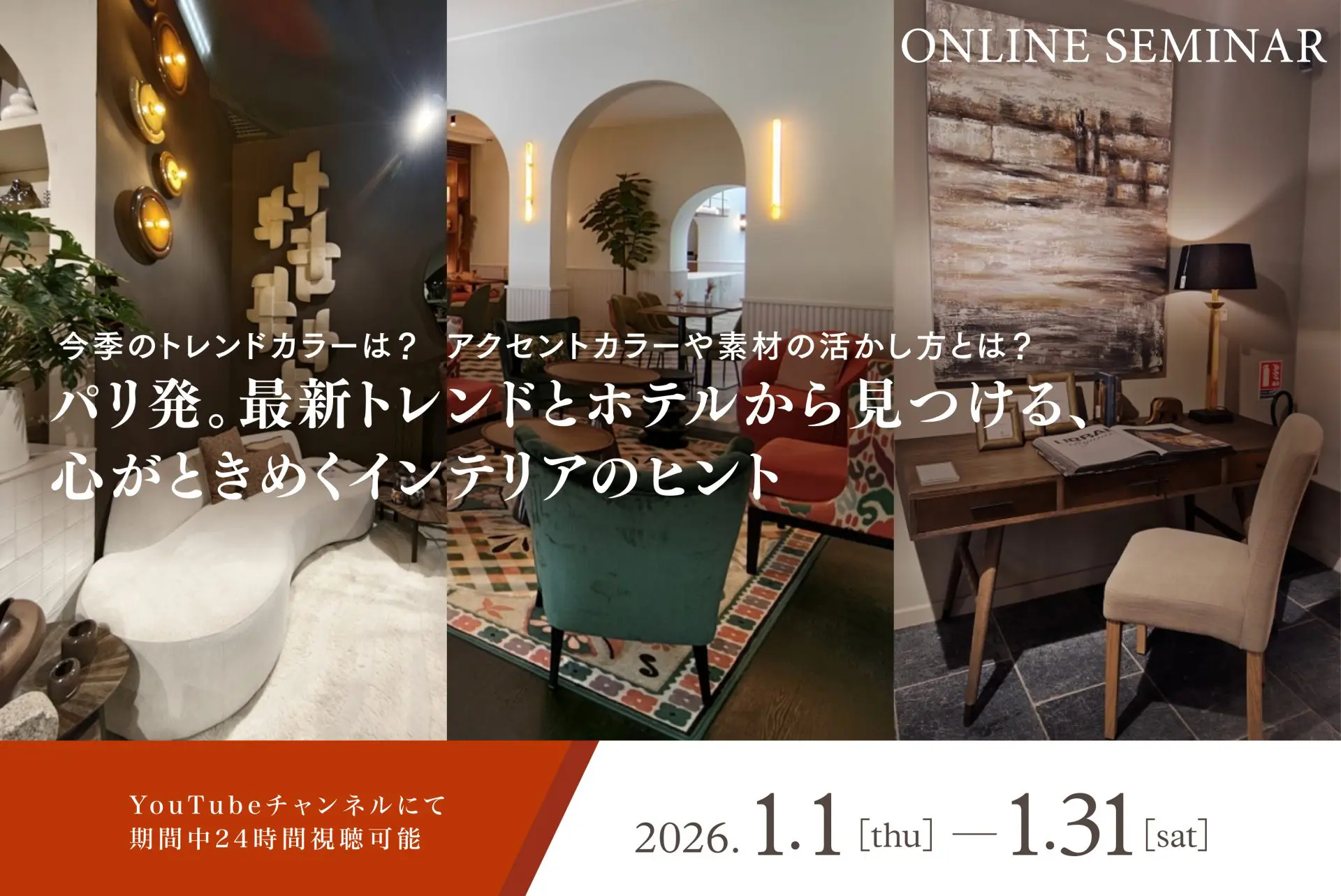 海外のインテリアトレンドを知りたい方はもちろん、自宅の模様替えを検討している方、住空間のイメージを膨らませたい方も、ぜひこの機会にご視聴ください。