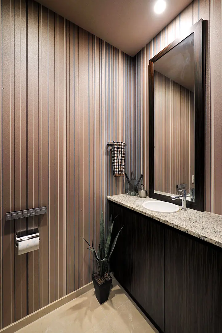 天然石やデザイン性の高いクロスなど、プロならではのアイテムをご提案しながら、エアレーションをポイントに新築マンションとは一味違うグレード感を演出しました。