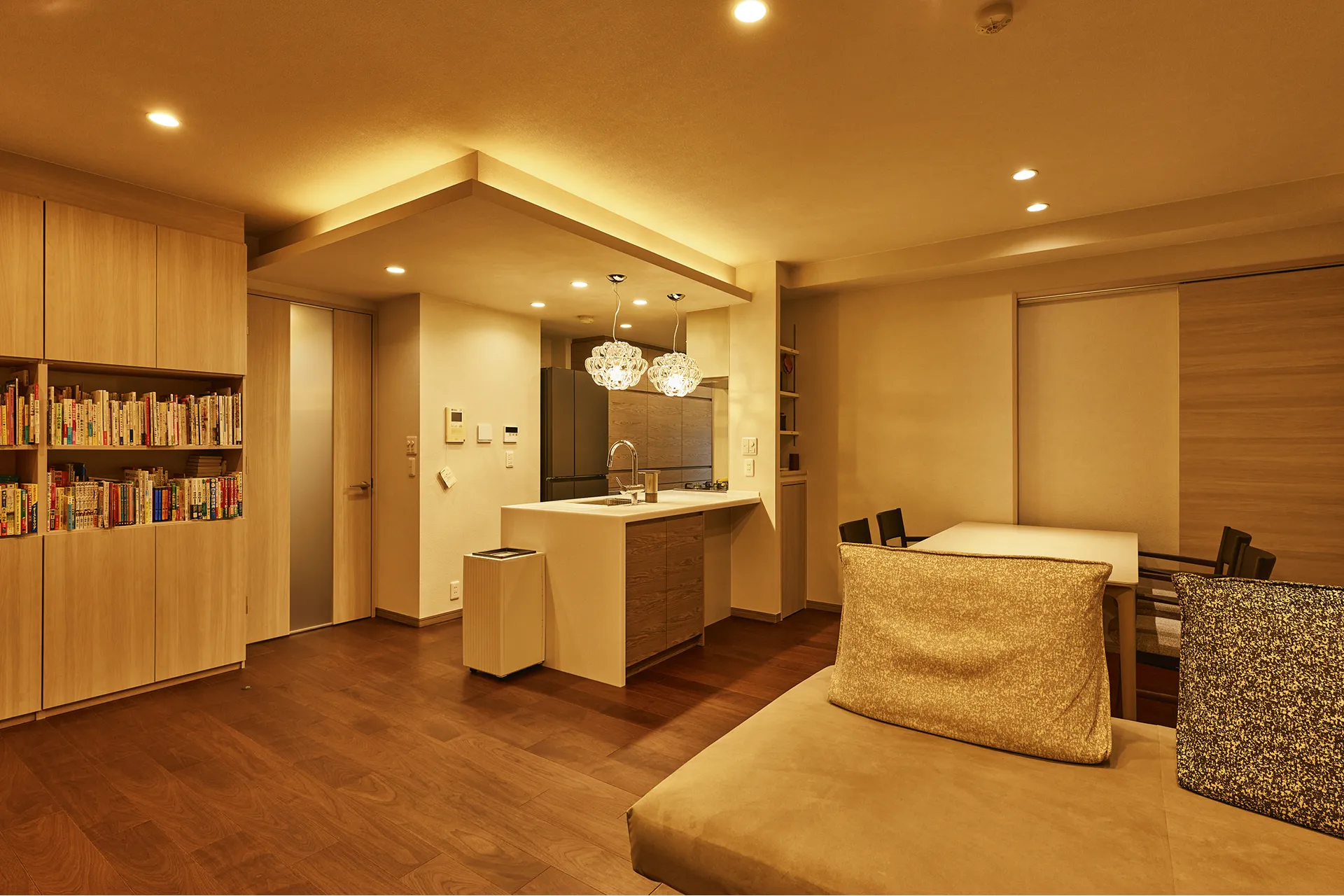 一流ホテルのバーのような寛ぎのダイニング。資産価値を高めるリフォームで快適な暮らしを。