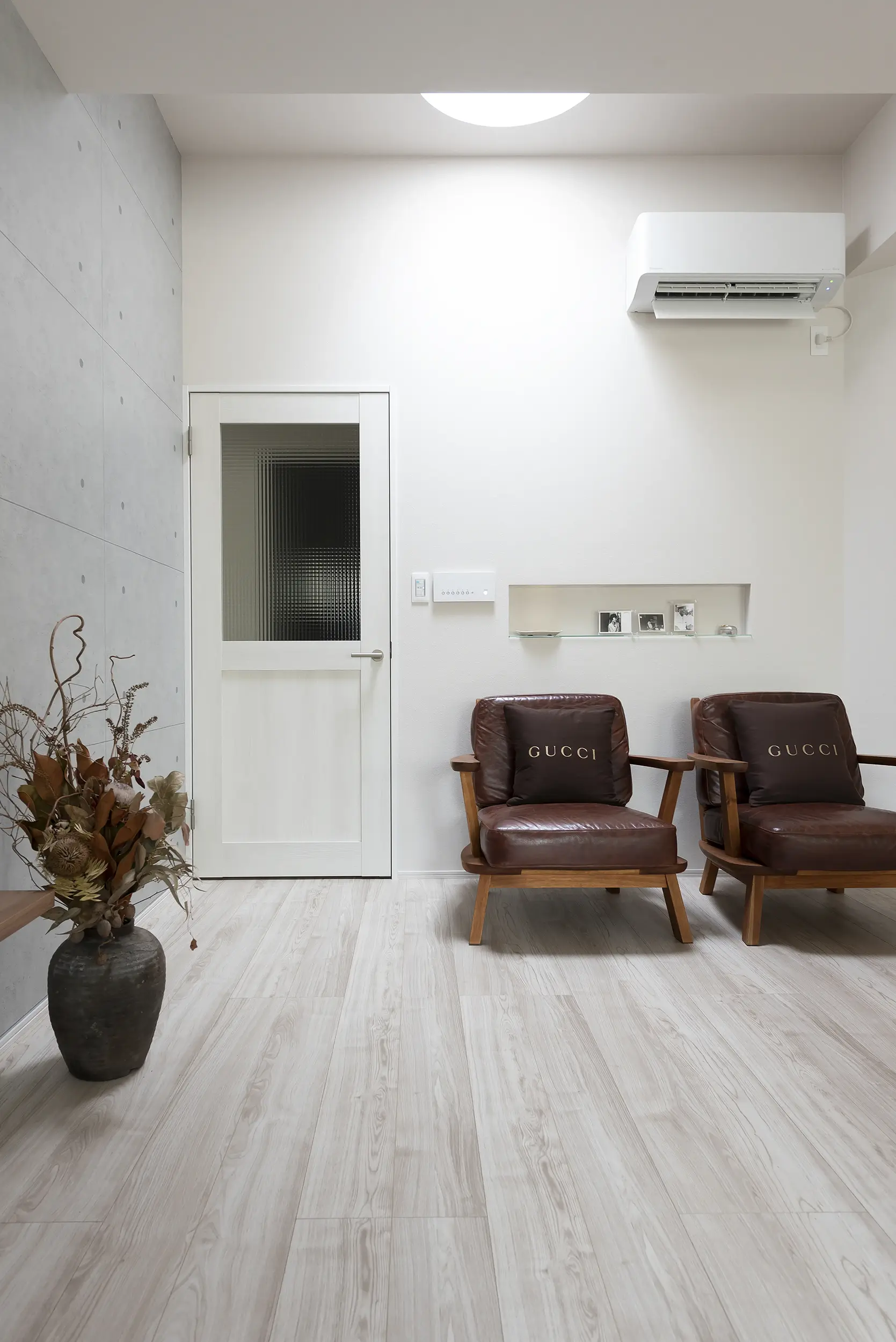 大阪市の鉄筋コンクリート造戸建てリノベーション実例です。ご両親が46年前に建てたRC造の戸建て住宅。しばらく空き家になっていましたが、先代が大切に住まれていた家を住み継ぐべく、リノベーションの計画を始められたお施主様ご夫妻。もともと細かく間仕切られていた2階フロアーに、ご夫婦2人が快適に住まえる様プランニングしました。生活時間が異なるご夫妻の寝室は別としながらも、寛ぎの空間であるLDKとの繋がりや家事動線には十分配慮して計画しました。インテリアはモダンながらも柔らかい印象を与える様にコーディネートしました。