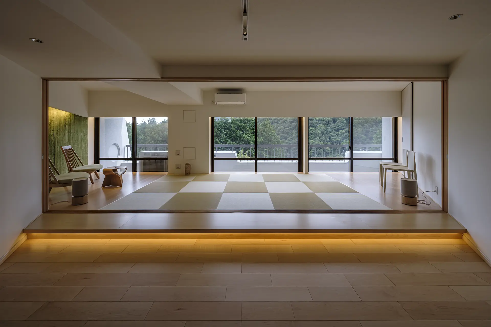 お施主様が長く住まわれている築25年のマンション専有部一室を、フルスケルトンでリノベーションした事例です。一部屋をリビングダイニングに取り込み、3LDKから2LDKの間取りへ。ゆとりのあるスペースや機能的な動線を確保しつつ、お施主様のお好みのデザインテイストを空間全体に取り入れるプランニングとしました。将来的なライフステージの変化も見据えながら、バリアフリーや経年での利便性を考慮した計画と共に、こだわりのインテリアによって、住むほどに愛着が生まれ、長く住み続けていける住まいを形にしました。