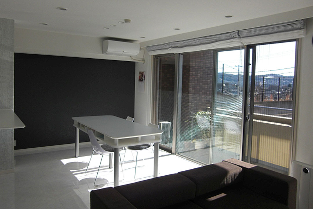 キッチンをオープンにしてハイサッシからの光が十二分に届く様にした、リビングダイニングキッチン。ウォークインクロゼットの間に設けた室内窓で南北の通風も考慮しています。さらに、幅を広げた玄関や廊下、2方向から入れるウォークインクロゼットなど、子育てしやすさ、暮らしやすさを盛り込みました。